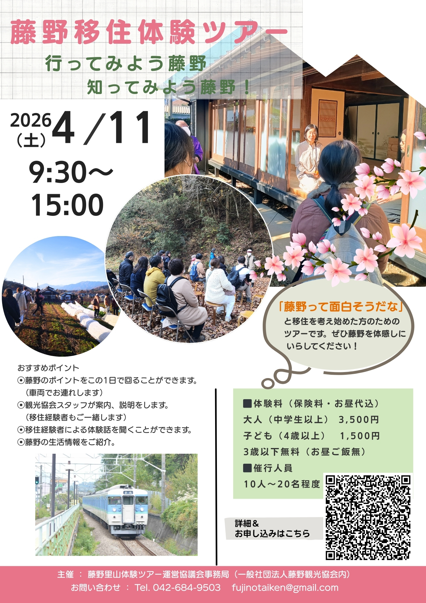4月11日(土)開催されます。お申し込みはQRコードもしくはhttps://www.fujinotaiken.com/まで